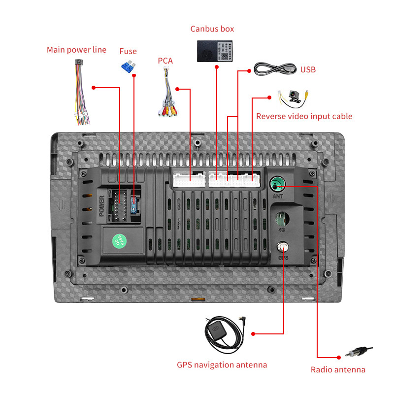 | ফাংশন ভূমিকা | নেভিগেশন, ব্লুটুথ ফোন, ব্লুটুথ মিউজিক, ব্লুটুথ ফোন বুক, রেডিও, রিভার্সিং ইমেজ, মিউজিক প্লে, ভিডিও প্লে, ওয়াইফাই ইন্টারনেট অ্যাক্সেস, 2 ইউএসবি, অডিও আউটপুট |